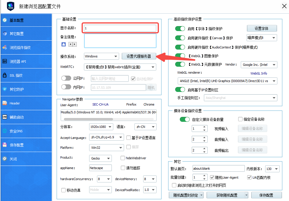 2. 点击这里“新建浏览器配置文件”新建浏览器配置。