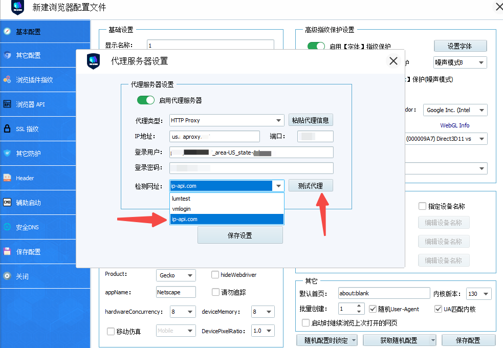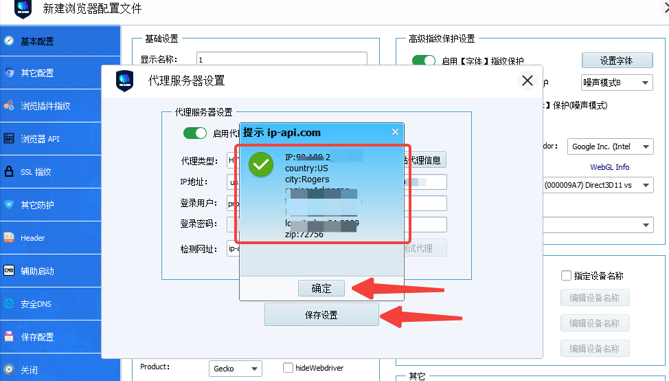 8. 打开配置好的指纹浏览器,访问IP地址检测网站,确认显示的IP地址是否已更改为代理服务器的IP。